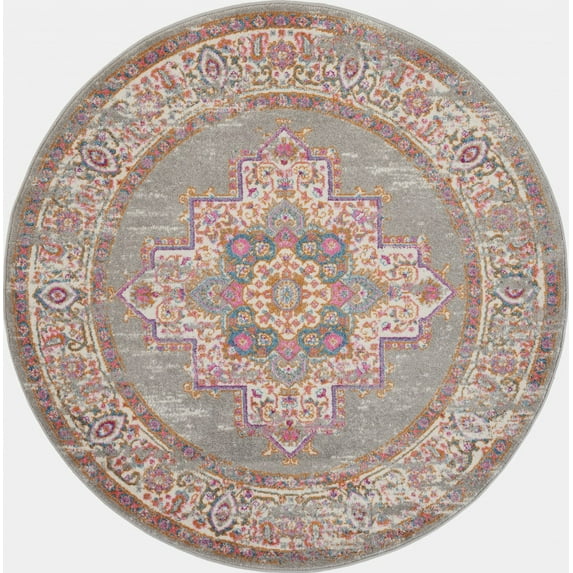 4’ Round Gray and Gold Medallion Area Rug