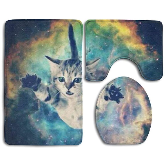 Hero image 0 of PUDMAD Aqua Floral 3 Piece Bathroom Rugs Set Bath Rug Contour Mat and Toilet Lid Cover, 0 of 2