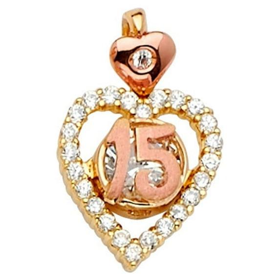 14k Yellow and Rose Gold Cubic Zirconia '15' Heart-shaped Quincinera Pendant