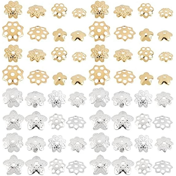 80Pcs Flower Bead Caps Hollow Bead End Caps Metal Multi-Petal Flower Caps