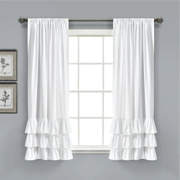 Hero image 0 of Lush Decor Allison Ruffle Ruffle 63" x 40" Solid White 3" Rod Pocket Pair Window Panel, 0 of 11