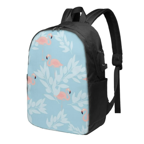 Hero image 0 of YFYANG 17" Laptop Backpack, Blue Flamingo Pattern Fashion Travel Work Backpack with USB and Headphone Cable Interface for Men and Women, 0 of 8