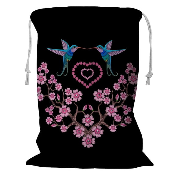 Hero image 0 of PKQWTM Embroidery Hummingbird Sakura Storage Basket Laundry Bag with Drawstring Size 24x32 Inch, 0 of 3