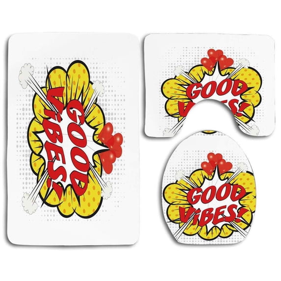 Hero image 0 of PUDMAD Good Vibes Pop Art Comics Icon Blast Explosion Retro Quote Red Hearts Hipster Cartoon 3 Piece Bathroom Rugs Set Bath Rug Contour Mat and Toilet Lid Cover, 0 of 2