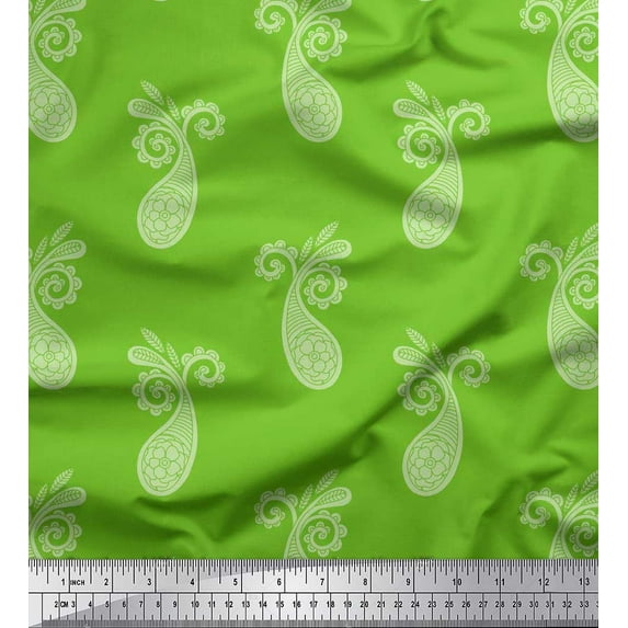 Soimoi Green Cotton Jersey Fabric Floral & Paisley Print Sewing Fabric Yard 58 Inch Wide