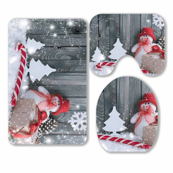 Hero image 0 of PKQWTM Christmas snowman branches presents candy canes 3 Piece Bathroom Rugs Set Bath Rug Contour Mat and Toilet Lid Cover, 0 of 2