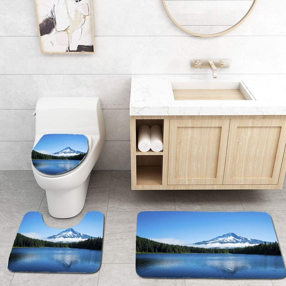 Hero image 0 of PUDMAD Mt Hood Mountain Lake Oregon 3 Piece Bathroom Rugs Set Bath Rug Contour Mat and Toilet Lid Cover, 0 of 2