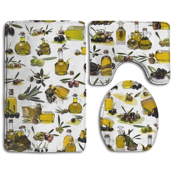 Hero image 0 of PUDMAD Olive Oil 3 Piece Bathroom Rugs Set Bath Rug Contour Mat and Toilet Lid Cover, 0 of 2