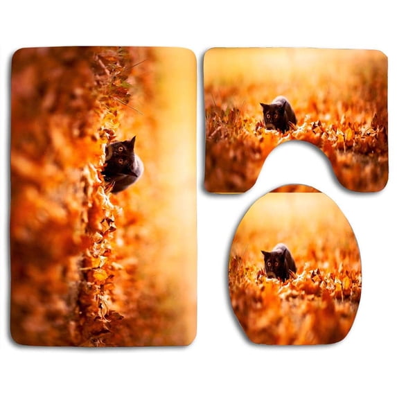 Hero image 0 of PUDMAD Cat in Ambush 3 Piece Bathroom Rugs Set Bath Rug Contour Mat and Toilet Lid Cover, 0 of 2