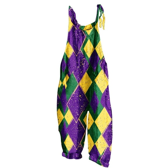 Hero image 0 of Awdenio Ladies Sleeveless Romper Dressy Adjustable Straps Mardi Gras Overalls Off-Shoulder Mask Print Cotton Linen Jumpsuit, 0 of 5