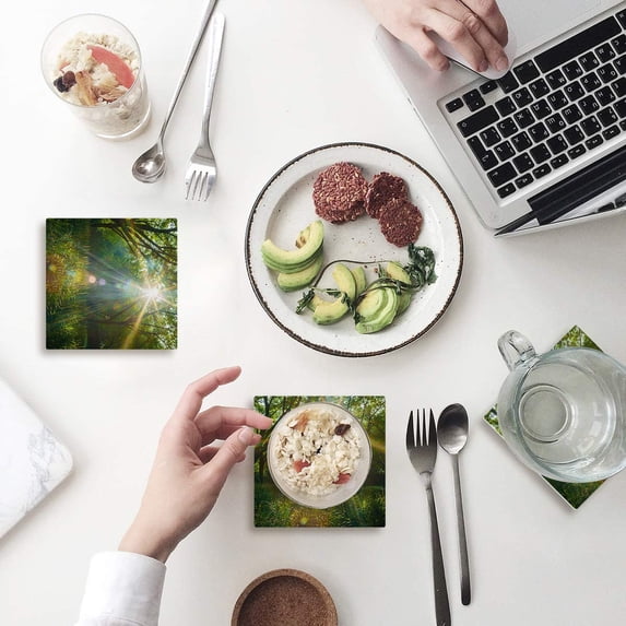 Hero image 0 of FMSHPON Green Forest Tree Sunshine Through Trees Woodland Nature Theme Set of 4 Coaster for Drinks, Absorbent Ceramic Stone Coasters Cup Mat with Cork Base for Home Kitchen Room Coffee Table Bar Decor, 0 of 4