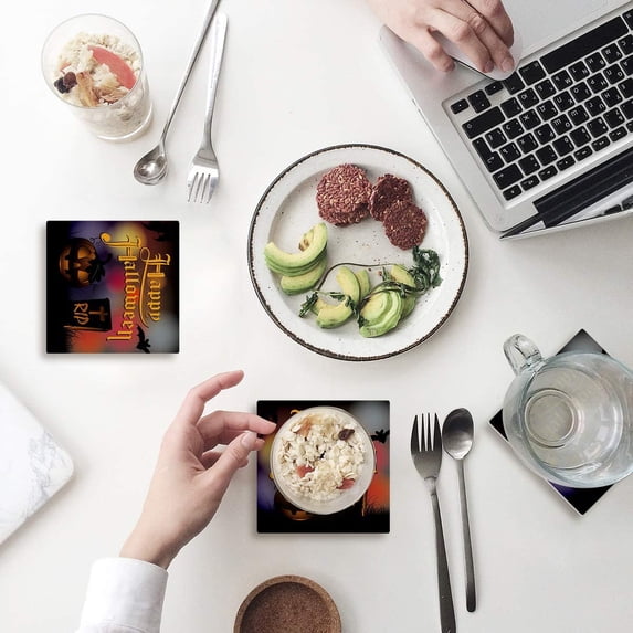 Hero image 0 of FMSHPON Happy Halloween Pumpkin Set of 6 Coaster for Drinks, Absorbent Ceramic Stone Coasters Cup Mat with Cork Base for Home Kitchen Room Coffee Table Bar Decor, 0 of 4