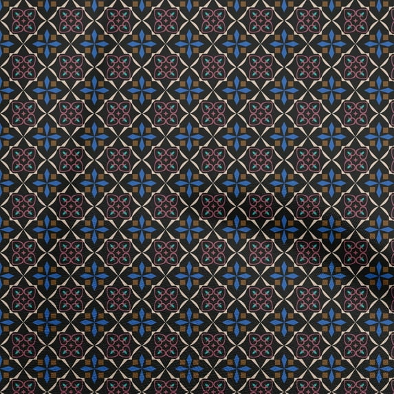 oneOone Cotton Poplin Black Fabric Arabic Moroccan Craft Projects Decor Fabric Printed By The Yard 56 Inch Wide