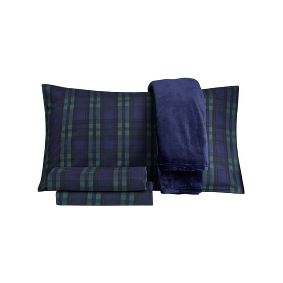 Hero image 0 of Sanders Holiday Microfiber 5 PC Full Sheet Set With Throw Bedding, Navy, 0 of 2