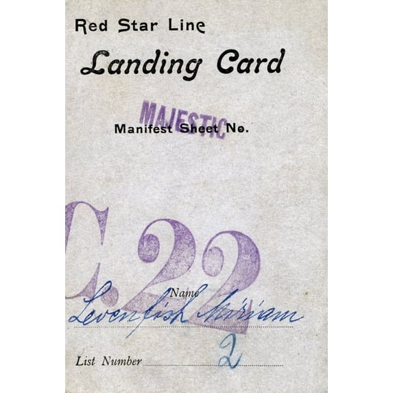 Hero image 0 of Ellis Island Landing Card. Nfront Of A Landing Card Issued To An Immigrant Arriving At Ellis Island On A Red Star Line, 0 of 4