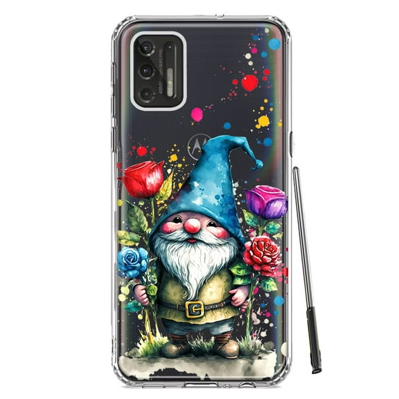 MUNDAZE Motorola Moto G Stylus 2021 Shockproof Clear Hybrid Protective Phone Case Gnome Red Purple Blue Roses Garden Cover
