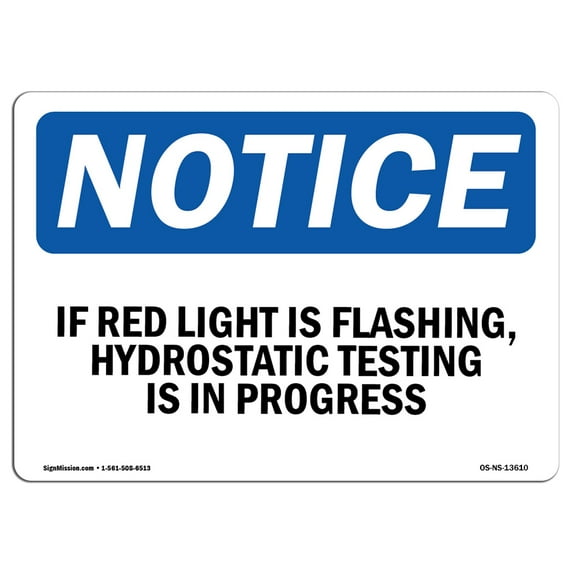 Hero image 0 of SignMission OS-NS-A-710-L-13610 7 x 10 in. OSHA Notice Sign - If Red Light is Flashing, Hydrostatic Testing, 0 of 6