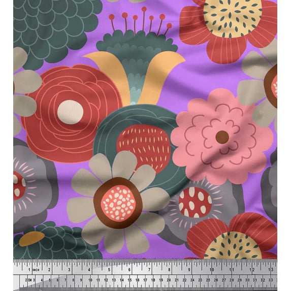 Soimoi Poly Georgette Fabric Flower Artistic Printed Fabric 1 Yard 42 Inch Wide