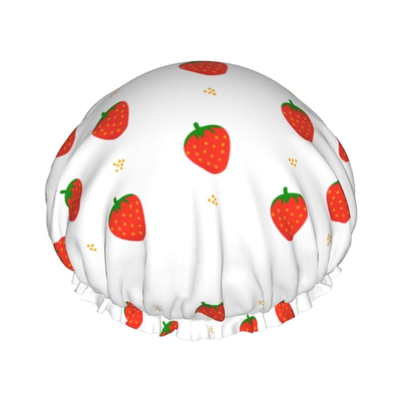 Hero image 0 of YFYANG Women's Double Waterproof Shower Cap, Red Cartoon Strawberry Reusable Hair Cap for All Hair Styles and Head Sizes, 0 of 9