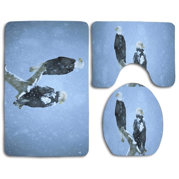 Hero image 0 of PUDMAD Bald Eagles in Falling Snow Kenai Peninsula 3 Piece Bathroom Rugs Set Bath Rug Contour Mat and Toilet Lid Cover, 0 of 2