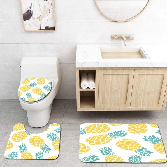 Hero image 0 of PUDMAD Cartoon Pineapple on a White 3 Piece Bathroom Rugs Set Bath Rug Contour Mat and Toilet Lid Cover, 0 of 2