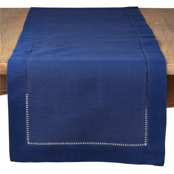 Hero image 0 of SARO 16 x 90 in. Rectangular Classic Hemstitch Border Table Runner - Navy Blue, 0 of 1