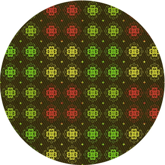 Ahgly Company Machine Washable Indoor Round Transitional Black Brown Area Rugs, 4' Round