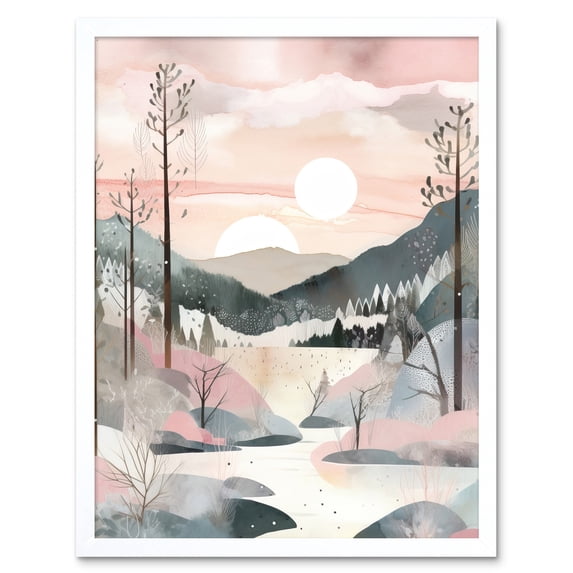 Concept Art Watercolour Forest Winter Landscape Art Print Framed Poster Wall Decor 12x16 inch