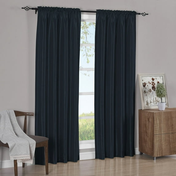 Hero image 0 of 2PC Faux Silk Window Curtain Treatment Set Rod Pocket Panels, 0 of 3