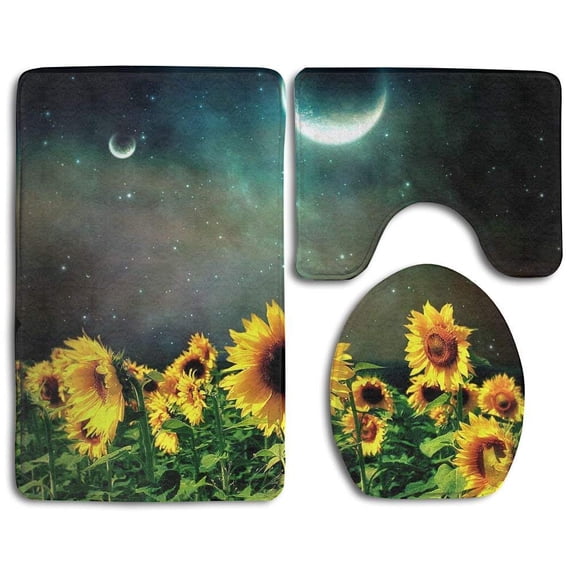 Hero image 0 of PUDMAD Moon Sunflowerss 3 Piece Bathroom Rugs Set Bath Rug Contour Mat and Toilet Lid Cover, 0 of 2