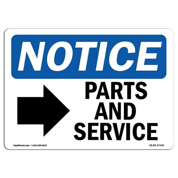 Hero image 0 of SignMission OS-NS-D-1824-L-17136 OSHA Notice Sign - Parts & Service-Right Arrow Sign with Symbol, 0 of 4