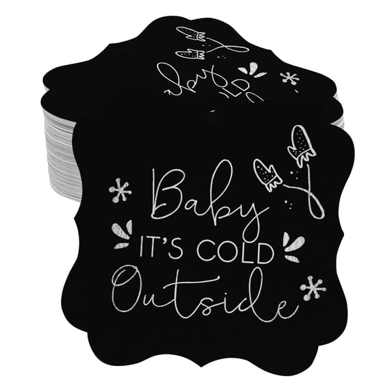 Hero image 0 of Inkdotpot Real Silver Foil Bracket Shape Paper Hang Tags Baby It's Cold Outside Baby Shower Favor Tags Pack Of 50, 0 of 7