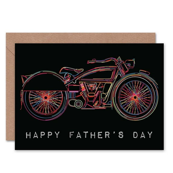 Hero image 0 of Fathers Day Colourful Illustration Motorcycle Bike Greetings Card Plus Envelope Blank inside, 0 of 3