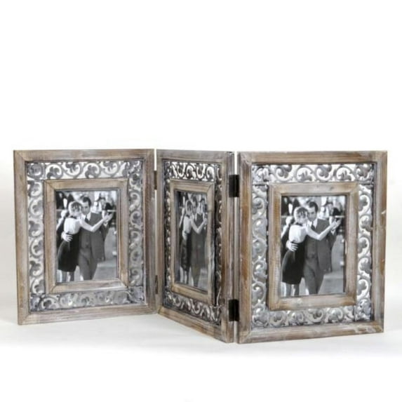 Hero image 0 of Set of 2 Wood And Metal Tri-Fold Photo Frame, 0 of 1