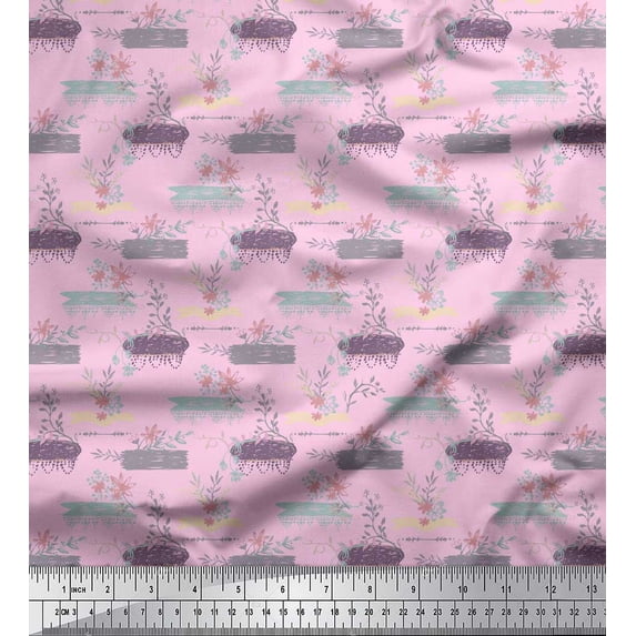 Hero image 0 of Soimoi Pink Heavy Canvas Fabric Floral & Leaves Print Sewing Fabric Yard 58 Inch Wide, 0 of 3