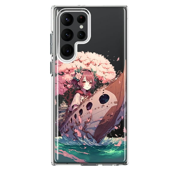 Hero image 0 of MUNDAZE Samsung Galaxy S23 Ultra Shockproof Clear Hybrid Protective Phone Case Kawaii Manga Pink Cherry Blossom Japanese Girl Boat Cover, 0 of 5
