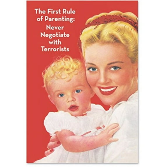 Funny Mother's Day Greeting Card with 5 x 7 Inch Envelope (1 Card) Mom First Rule of Parenting - Smiling Mom with Child
