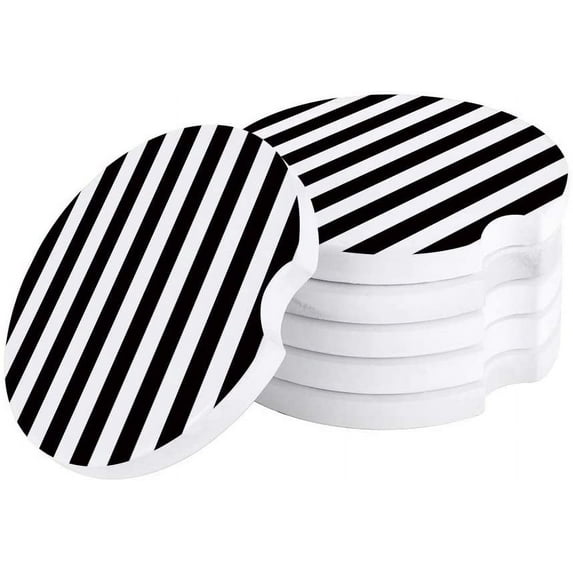Hero image 0 of FMSHPON Simple Black and White Stripes Set of 2 Car Coaster for Drinks, Absorbent Ceramic Stone Coasters Cup Mat with Cork Base for Home Kitchen Room Coffee Table Bar Decor, 0 of 5