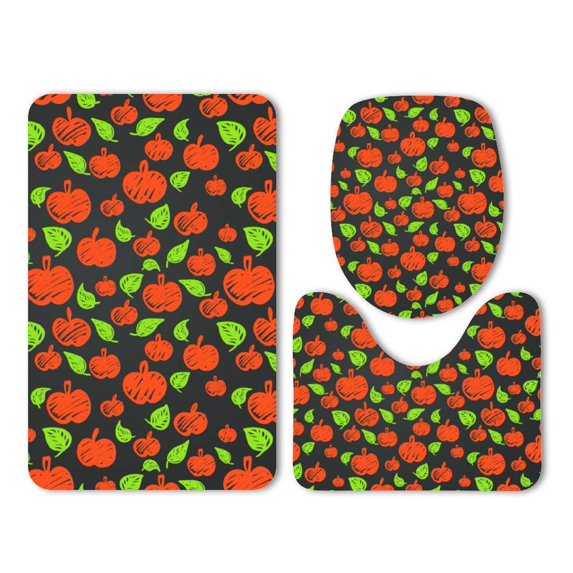 Hero image 0 of PUDMAD Apple Leaves Graffiti Cute Style 3 Piece Bathroom Rugs Set Bath Rug Contour Mat and Toilet Lid Cover, 0 of 2