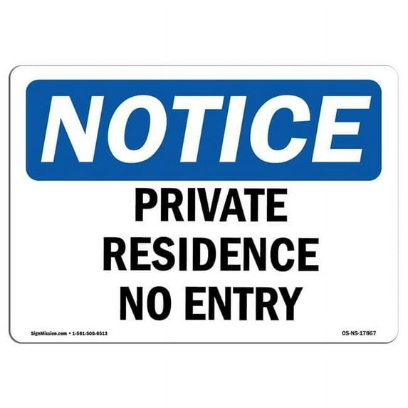 Hero image 0 of SignMission OS-NS-P-710-L-17867 OSHA Notice Sign - Private Residence No Entry, 0 of 5