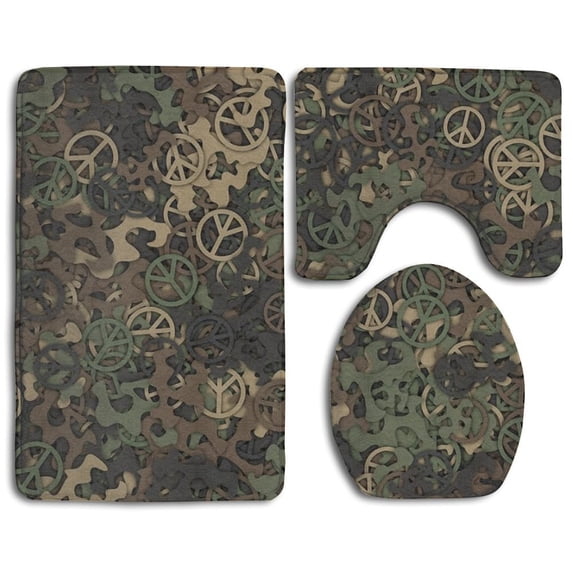 Hero image 0 of PUDMAD Camou Peace Sign 3 Piece Bathroom Rugs Set Bath Rug Contour Mat and Toilet Lid Cover, 0 of 2