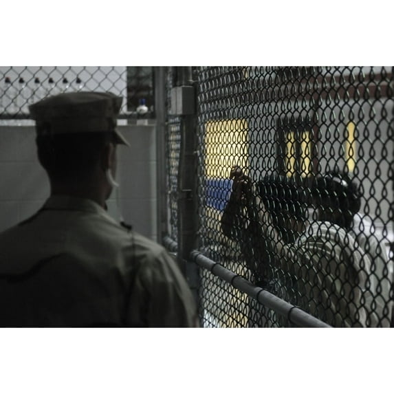 Hero image 0 of U.S. Sailor Stands Watch Over A Cell Block At U.S. Naval Station Guantanamo Bay Military Prison While Detainees Look, 0 of 2