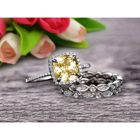 344.4 out of 5 Stars. 34 reviewsSave withShipping, arrives in 2 daysTrio Set 3.05 Carat 7mm Cushion Cut Champagne Diamond Moissanite 10k Rose Gold Wedding Set Bridal Ring Infinity Stacking Matching Band Art Deco $799.99