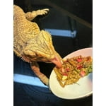 Bearded Brandon loves the dried works but spits out the orange colored round parts