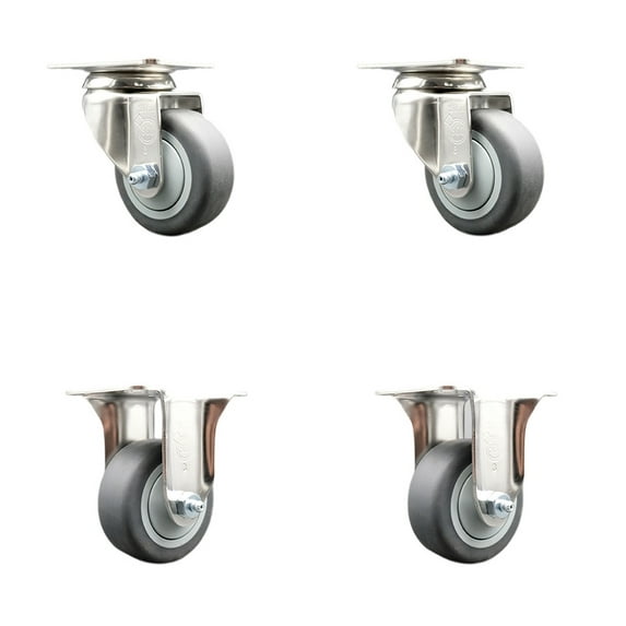 Hero image 0 of 3.5 Inch 316SS Thermoplastic Rubber Wheel Swivel Top Plate Caster Set 2 Rigid, 0 of 2