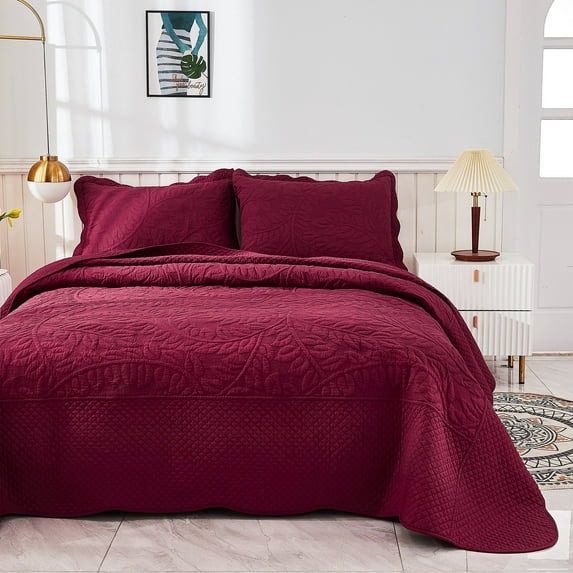 3-Piece 100% Cotton Oversized Bedspread Set Coverlet Set Lightweight Quilt Set Embroidery Farmhouse Bedding Set T