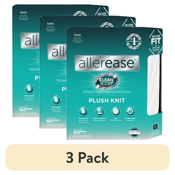 (3 pack) AllerEase CleanBoost Plush Knit Mattress Cover Protector, Twin - Fitted, w/ Straps, Waterproof3 pack Allerease Clean Boost Plush Knit Fitted Mattress Protector TwinAllerease Clean Boost Plush Knit Fitted Mattress Protector TwinAllerease Clean Boost Plush Knit Fitted Mattress Protector KingAllerease Clean Boost Plush Knit Fitted Mattress Protector QueenAllerease Clean Boost Plush Knit Fitted Mattress Protector Full