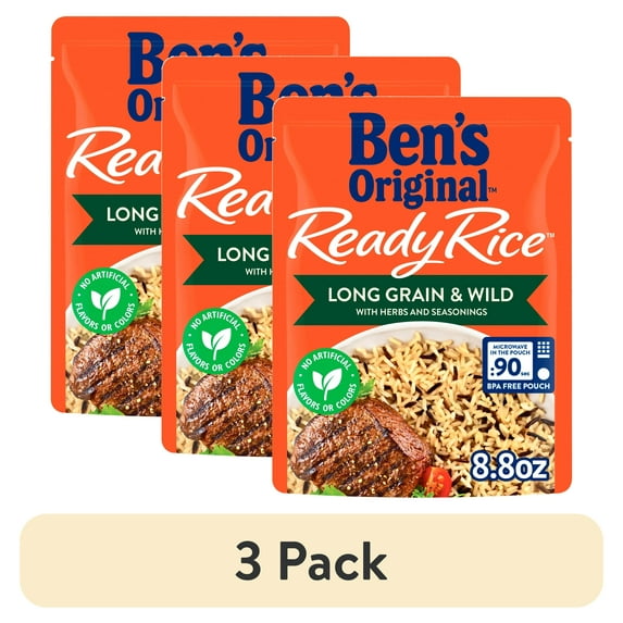 (3 pack) Ben's Original Ready Rice Long Grain and Wild Flavored Rice, Easy Dinner Side, 8.8 Ounce Pouch3 pack Ben s Original Ready Rice Long Grain and Wild Flavored Rice Easy Dinner Side 8 8 Ounce PouchBen s Original Ready Rice Long Grain and Wild Flavored Rice Easy Dinner Side 8 8 Ounce Pouch12 pack Ben s Original Ready Rice Long Grain and Wild Flavored Rice Easy Dinner Side 8 8 Ounce Pouch