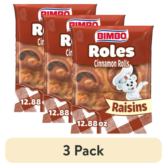 - 3-pack of Bimbo Roles de Canela con Pasas Cinnamon Rolls with Raisins, 6 count, Pastries, 12.88 oz Bag
