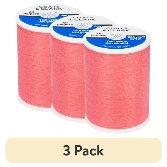 (3 pack) Coats & Clark All Purpose Medium Coral Polyester Thread, 300 Yards